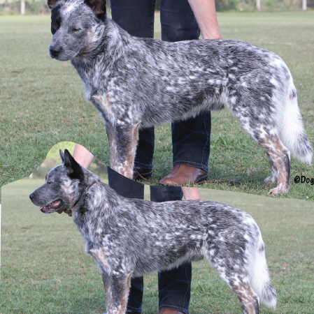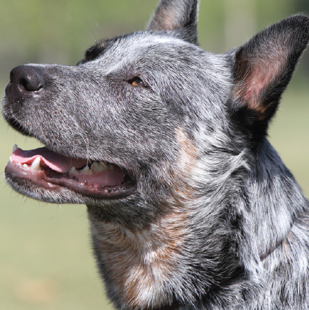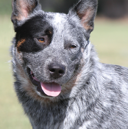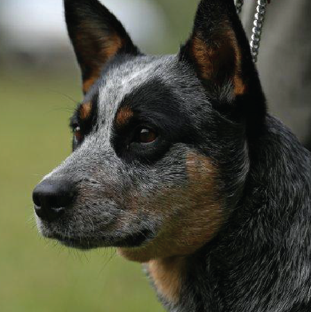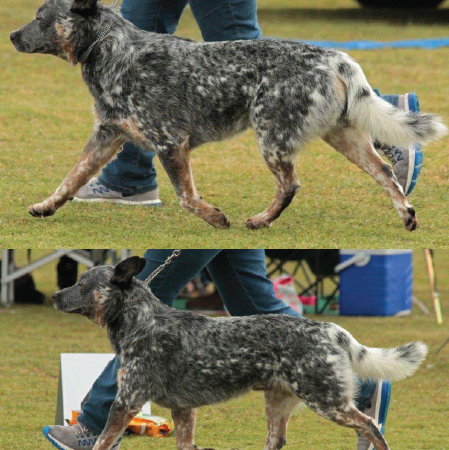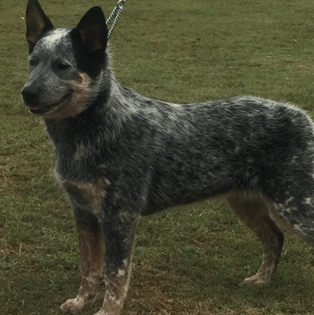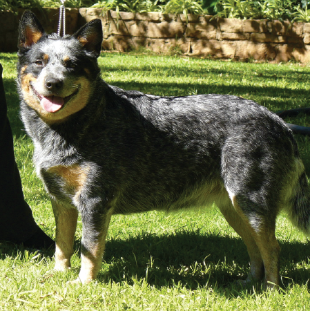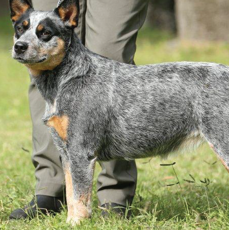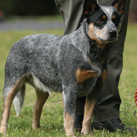 The Australian Cattle Dog is a compact, muscular dog that is both strong and agile. They have alert ears that stand up straight and a keen expression that shows they are eager to work. These dogs must be well-conditioned and should never look delicate or cumbersome. They need to be able to perform the job of drover and have the ability to quickly move out of the way of the cattle. When in conformation competition, this unique looking canine shows in only two accepted coat colors: red or blue. [click here for more info]